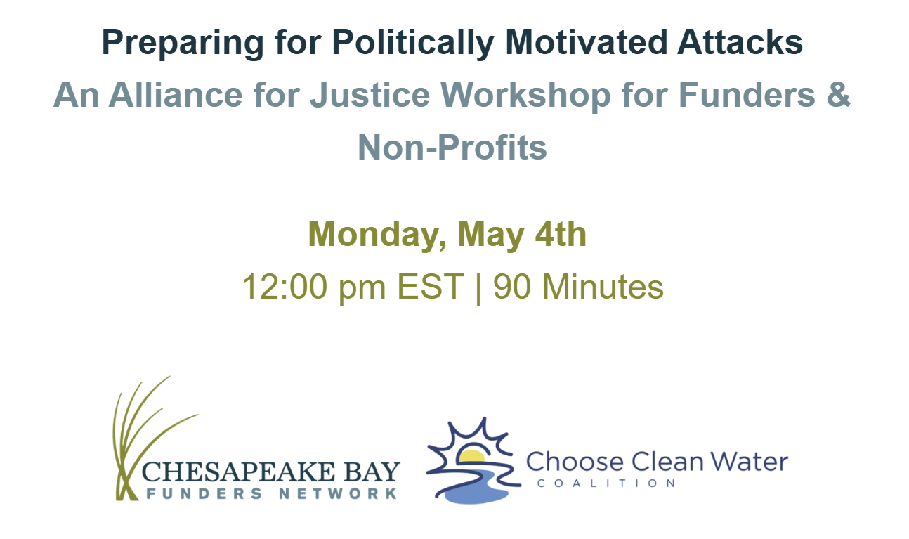 This workshop is co-sponsored by the Chesapeake Bay Funders Network and the Choose Clean Water Coalition. Please contact Megan Milliken, megan@chesbayfunders.org, with any questions.
